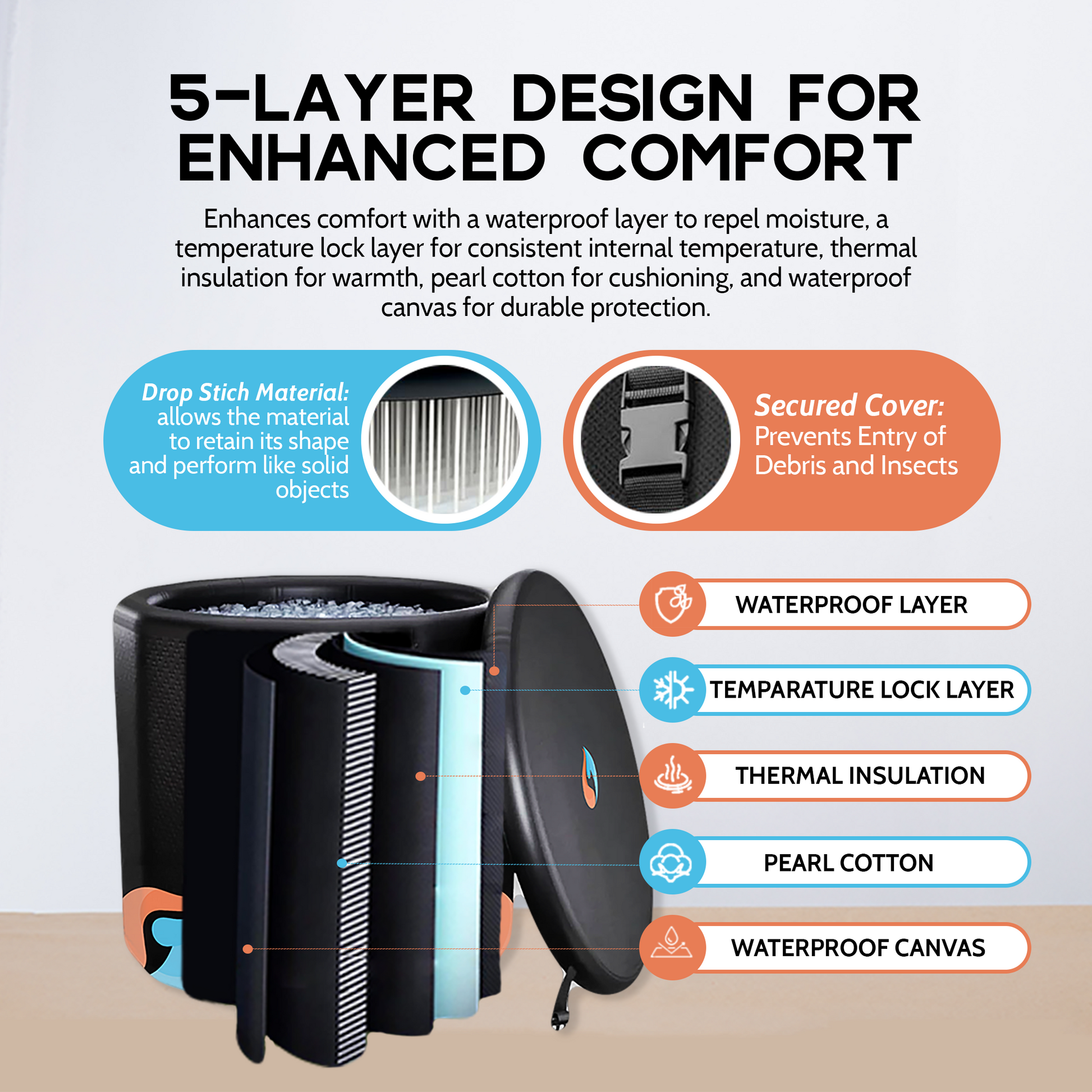 Built to Last - Crafted with premium PVC material and a sturdy cover, our therapy tub boasts a resilient build designed to withstand even the toughest conditions. Its durable construction ensures longevity, providing unwavering performance for your recovery needs.