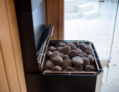 Sauna stones (265 lbs, 8 boxes required) and Sauna Control sold separately