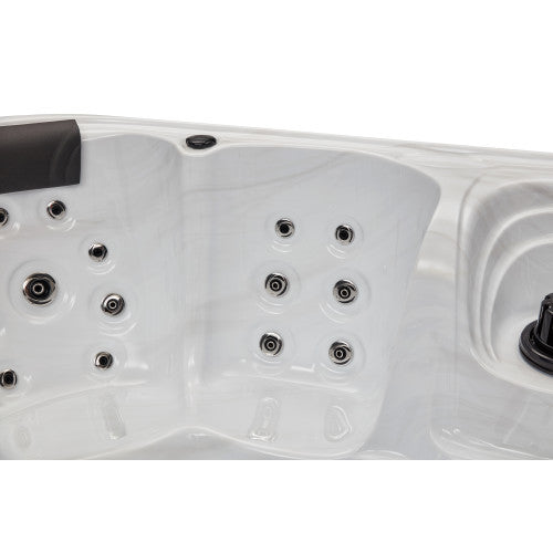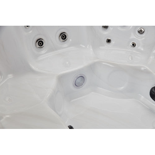 The Savannah 6-person luxury spa with cloud grey interior provides best in class ergonomic seating combined with a bonus integrated lounge seat for the ultimate in comfort and relaxation. A total of 52 therapeutic massage jets provides a complete body massage while the integrated cushioned headrests help complete a rejuvenating and relaxing spa experience. Two powerful multi-speed pumps provide ample power for the adjustable stainless steel jets in this spacious home spa. A separate filter pump ensures the water continues to circulate while the spa is not in use keeping the water clean and sanitary. The Savannah also boasts a premium Bluetooth sound system. High density multi-layer insulation improves energy efficiency and reduces operating costs in colder climates.
